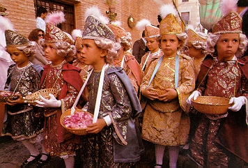 Definición del Diccionario de la Lengua Española de la Real Academia Española: "Jueves, sexagésimo (60th) día después del domingo de Pascua de Resurrección, el el cual celebra la iglesia católica la festividad de la institución de la Eucaristía." El Corpus presenta otra oportunidad para una procesión religiosa, como se nota aquí.