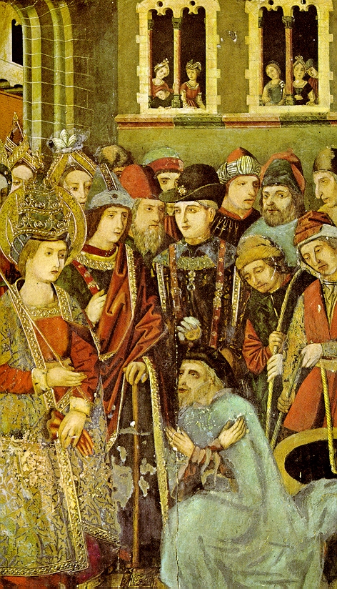 Uno de los episodios más tristes pero más ilustrativos e importantes en la historia de España es la expulsión de los judíos en el año 1492. Había sentimientos profundamente anti-semíticos antes de su expulsión. Es interesante notar que durante la Semana Santa los españoles de este pueblo aragonés vuelven a realizar, de una manera dramática, la persecusión de los judíos. Aquí se ve una interpretación artística de la época de la expulsión en que un judío les pide favores a los Reyes Católicos, Fernando e Isabel. Es simbólico que toda la gente cristiana mire para abajo al judío.